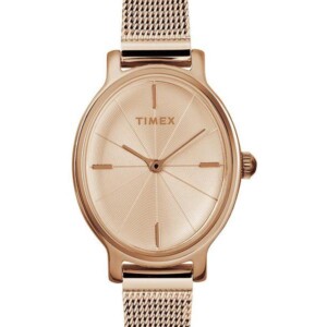 Timex Milano TW2R94300 to subtelny zamiennik biżuterii, jest wyjątkowo stylowy, ale o wiele bardzie funkcjonalny od zwykłych błyskotek. Zamiast skórzanego paska, jako mocowanie, wykorzystano w nim piękną plecioną bransoletę złożoną z małych, pozłacanych, stalowych kółeczek. Rozmiary zegarka pozwalają na noszenie go z dużą wygodą, a antyalergiczna stal nie powoduje żadnych nieprzyjemnych konsekwencji dla skóry. Koperta, jak i tarcza zegara również są w kolorze żółtego złota, ale każdy element o lekko innym odcieniu, dla lepszej przejrzystości. Wewnątrz kryje się kwarcowy mechanizm zasilany baterią. Tarczę zegara chroni mineralne szkło zapewniające odporność na stłuczenia i zarysowania. Całość konstrukcji jest wodoodporna na poziomie 30 m, więc nie należy się przejmować zachlapaniami.