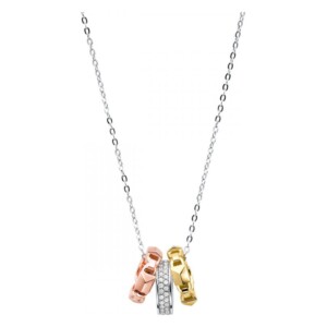 Srebrny pozłacany różowym złotem naszyjnik ozdobiony zawieszką z kryształkami.