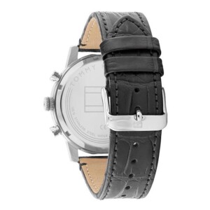 Tommy Hilfiger SULLIVAN 1791883 to unikalny zegarek męski. Zegarek umieszczony jest na czarnym skórzanym pasku, który znakomicie układa się na ręku. Pasek zaprojektowany jest z miękkiej, naturalnej skóry, przyjemnej w dotyku. Całość wykonana jest ze szlachetnej stali antyalergicznej (316l). Stal chirurgiczna cechuje się niewielką zawartością niklu, dzięki czemu, uczula niecałe 5% alergików. Zegarek wyposażony jest w mechanizm kwarcowy, który jest zasilany jedną baterią. Mineralne szkło, umieszczone na okrągłej srebrnej tarczy, charakteryzuje wysoka odporność na stłuczenia. Posiada 4/10 w skali Mohsa. Ponadto zegarek wyposażony jest w datownik, wskazujący aktualną datę oraz w stoper, który odmierza sekundy, itd.