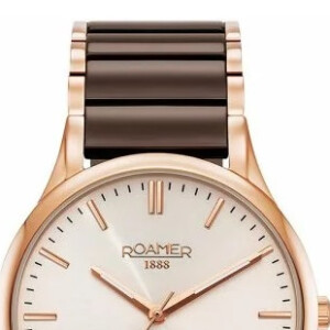 Damaski zegarek Roamer model 658833 49 35 63 zachwyca swoją elegancją i wysublimowaną estetyką, stając się kwintesencją szwajcarskiego rzemiosła i precyzyjnego designu. Jego okrągła koperta o średnicy 40mm, wykonana ze stali szlachetnej i zdobiona technologią PVD/IP w kolorach brązowym i różowym złocie, nadaje temu modelowi unikalnego charakteru. Bransoletka, dopracowana w każdym szczególe, podkreśla luksusowy wygląd, a szafirowe szkło zapewnia niezrównaną odporność na zarysowania. Jasna tarcza zegarka harmonijnie komponuje się z całością, tworząc spójną i wyrafinowaną całość idealną dla każdej kobiety ceniącej elegancję i jakość.
