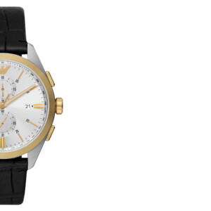 Zegarek męski Emporio Armani model AR11498 to wyrafinowana esencja stylu i elegancji, jaką oferuje znana na całym świecie marka. Model ten, wykonany ze stali szlachetnej i zdobiony techniką PVD/IP w kolorze żółtego złota, zachwyca swoim błyskiem oraz doskonale komponuje się z czarnym, skórzanym paskiem. Okrągła, 43mm koperta nadaje zegarkowi klasycznego wyglądu, który w połączeniu z jasną tarczą podkreśla czytelność i styl fashion. Mineralne szkło zabezpiecza przed zarysowaniami, a świetlne wskazówki oraz indeksy zapewniają łatwość odczytu godziny także po zmroku. Złote wykończenia i funkcje takie jak chronograf, datownik i tachymetr dodają temu zegarkowi praktycznej funkcjonalności, idealnej dla nowoczesnego mężczyzny.
