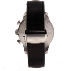 Centralnym elementem zegarka Maurice Lacroix PT6288-SS001-330-1 jest okrągła koperta, którą wykonano z stali szlachetnej. Materiał ten ceniony jest głównie z uwagi na właściwości antyalergiczne i nie wywoływanie podrażnień skóry. Znajdziemy go również na skórzanym, czarnym pasku tego modelu, jak zapięcie w formie zatrzasku, na którym dodatkowo wygrawerowano logotyp producenta. Elementem, na który szczególnie chcielibyśmy zwrócić uwagę z tym modelu jest analogowy cyferblat zamknięty pod odpornym na zarysowania szkłem szafirowym. Mimo, iż znajdziemy na nim wiele detali, takich jak subtarcze funkcji chronografu, tachymetru, datownik pokazujący obecny dzień miesiąca oraz oczywiście indeksy liniowe i fluorescencyjne wskazówki to zauważyć musimy, iż tarcza jest czytelna a odczytywanie z niej danych to „czysta przyjemność”. Dokładność zegarka Maurice Lacroix PT6288-SS001-330-1 powierzona została mechanizmowi automatycznemu, którego siłę napędową stanowi wahnik. Jego praca ukazana jest dzięki przeszklonemu deklowi.