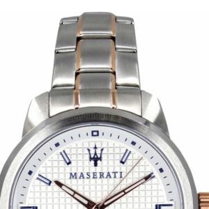 Maserati R8853121005 to zegarek męski, który łączy w sobie styl Fashion z klasyczną elegancją, co odzwierciedla prestiż marki Maserati. Obudowa z wykonana ze stali szlachetnej, okrągła koperta o średnicy 44 mm oraz srebrny kolor podkreślają jego nowoczesny, ale i ponadczasowy charakter. Jasna tarcza jest czytelna i funkcjonalna, wyposażona w datownik oraz fluorescencyjne wskazówki i indeksy, co zwiększa komfort użytkowania. Bransoletka oraz zapięcie motylkowe zapewniają bezpieczeństwo i wygodę noszenia. Dodatkowo, mineralne szkło ochronne i wodoodporność do 50 metrów czynią ten zegarek nie tylko stylowym, ale i praktycznym wyborem dla każdego mężczyzny ceniącego luksus i funkcjonalność.