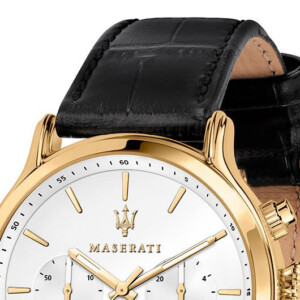 Zegarek męski Maserati, model R8871618012, to kwintesencja luksusowego stylu i nowoczesnej elegancji, która charakteryzuje markę Maserati. Posiada okrągłą kopertę o średnicy 42 mm wykonaną ze stali szlachetnej, posiada wodoodporność do 100 metrów, co poświadcza jego wszechstronność i solidność. Czarny, srebrny i pozłacany żółtym złotem kolor koperty w technologii PVD/IP nadaje zegarkowi wyjątkowego charakteru. Jasna tarcza harmonijnie komponuje się ze skórzanym paskiem, dodając klasy całości. Styl Fashion wyraża się w każdym detalu tego zegarka, czyniąc go idealnym dodatkiem dla mężczyzny ceniącego zarówno funkcjonalność, jak i wyrafinowany design.