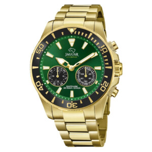 Zegarek męski Jaguar model J899/1 to kwintesencja sportowo-eleganckiego stylu, idealna dla mężczyzn ceniących sobie zarówno funkcjonalność, jak i wyrafinowany design. Wykonany ze stali szlachetnej z pozłacaniem w kolorze żółtego złota, z okrągłą kopertą o średnicy 46mm i odpornym na zarysowania szkłem szafirowym, prezentuje się niezwykle prestiżowo. Tarcza w ciemnych barwach – czarnym i zielonym – doda każdemu strojowi męskości i elegancji, a solidna bransoleta gwarantuje wygodę oraz trwałość. Wartość marki Jaguar podkreśla każdy detal tego zegarka, obiecując nie tylko jakość, ale i luksus każdego dnia.