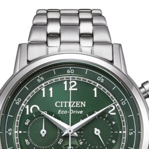 Męski zegarek Citizen model CA4630-53X to kwintesencja elegancji i najwyższej jakości, która wyraża się w wykonaniu ze stali szlachetnej. Okrągła koperta o średnicy 42 mm oraz bransoleta w srebrnym kolorze podkreślają klasyczny, ale i nowoczesny design. Zielona tarcza z cyframi arabskimi dodaje wyrafinowanego charakteru, a mineralne szkło zapewnia trwałość i odporność na zarysowania. Zegarek ten nie tylko wygląda znakomicie, ale również oferuje funkcjonalność dzięki wodoodporności do 50 metrów, co umożliwia pływanie powierzchniowe. Dzięki zastosowaniu mechanizmu solarnego, Citizen CA4630-53X jest również przyjazny dla środowiska, eliminując potrzebę regularnej wymiany baterii. Elegancja i nowoczesna technologia splatają się tu w harmonijną całość, która umożliwia noszenie tego czasomierza zarówno na co dzień, jak i na specjalne okazje.