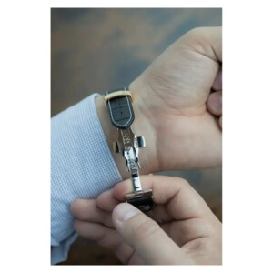 - Pasek/Bransoleta Pasek skórzany - Wykonany z naturalnej, miękkiej skóry, która idealnie układa się na nadgarstku. Dzięki odpowiedniemu wyprofilowaniu przylega do ręki jednocześnie utrzymując kopertę w stabilnej pozycji. Standardowa żywotność paska wynosi 6-9 miesięcy, jednak dla zapewnienia długowieczności można stosować specjalne kosmetyki poprawiające jego wygląd.