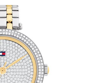 Model zegarka Tommy Hilfiger o numerze 1782760 to kwintesencja stylu Fashion, który odzwierciedla ducha znanej marki. Dzięki eleganckiej srebrnej tarczy uzupełnionej cyrkoniami zyskuje na wyjątkowym blasku, przyciągając spojrzenia elegancją i nowoczesnością. Dwukolorowy pasek z bransolety oraz stalowa, srebrna koperta podkreślają jego uniwersalność i wielowymiarowy charakter. Ten zegarek, będący mieszanką klasyki i nowoczesnych trendów, idealnie komponuje się z każdym strojem, dodając uroku zarówno w codziennych jak i szczególnych okolicznościach. Dzięki wodoodporności do 30 metrów idealnie nadaje się na lekkie zachlapania, co czyni go doskonałym towarzyszem w różnych sytuacjach życiowych.