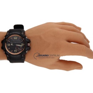 Męski zegarek Casio GG-1000RG-1A, to wyjątkowa propozycja dla miłośników aktywnego stylu życia, która przyciąga spojrzenia swoim sportowym designem i odważnym połączeniem koloru różowego złota z granatową tarczą. Kształt okrągłej koperty o średnicy 56mm, wykonanej ze stali szlachetnej, zwiększa wrażenie solidności, podczas gdy gumowy pasek zapewnia komfort noszenia w każdych warunkach. Różowe złoto nadaje zegarkowi elegancki charakter, który doskonale komponuje się z ciemną tarczą. Casio z tym modelem potwierdza swoją renomę, oferując zegarek, który jest nie tylko wizualnie atrakcyjny, lecz także wytrzymały i funkcjonalny, co jest wynikiem 50 lat doświadczeń marki w tworzeniu zegarków.