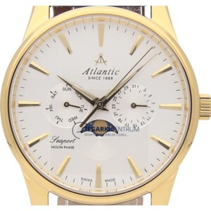 Zegarek męski Atlantic Seasport 565504521 w kształcie okrągłej koperty o średnicy 41 mm idealnie będzie pasował dla miłośników stylu fushion. Zegarek posiada popularny mechanizm kwarcowy, który jest zasilany baterią oraz szkło szafirowe, które jest odporne na zarysowania. Warto wspomnieć, że zarysować można jedynie szkło diamentem, przez co staje się bardzo wartościowym produktem. Tarcza w kolorze jasnym bardzo dobrze współgra z brązowym skórzanym paskiem. Zegarek jest wykonany ze stali szlachetnej antyalergicznej, która nie powoduje podrażnień i alergii. Zegarek męski Atlantic Seasport 565504521 jest przystosowany dla osób, które cenią sobie komfort. Czasomierz posiada szereg funkcji. Najważniejsza funkcja to przede wszystkim multifunction, która pokazuje dokładną datę i godzinę oraz fluorescencyjne, które po naświetleniu w dzień, świecą w nocy. Warto, wspomnieć, że ów Atlantic posiada fazy księżyca oraz pamięć okrążeń. Czasomierzu jest również odporny na zachlapania oraz 50 m pływania powierzchniowego. Zegarek Atlantic Seasport 565504521 posiada 2-letnią gwarancję.