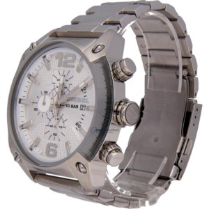 Przedstawiamy męski zegarek Diesel DZ4203, który stworzony został z myślą o mężczyznach kochających modę, ale ceniących sobie przede wszystkim swój własny, nietuzinkowy styl. Design niniejszego modelu opiera się na masywnej, stalowej kopercie o zaokrąglonym kształcie i zamocowanej na jej teleskopach bransolecie wykonanej z pokaźnych ogniw. Z kopertą jak i bransoletą współgra jasna tarcza zegarka na której widoczne są indeksy godzinowe, cyfry arabskie, ale również dodatkowe tarczki chronografu, który popularnie nazywany jest stoperem. Poza tym, na cyferblacie producent zdecydował się umieścić pojedynczy datownik, który wskazuje dzień miesiąca. Tarczę zegarka DZ4203 dla mężczyzn osłania mineralne szkło, które stosunkowo trudno zbić. Jak możemy wyczytać z informacji zawartych na tarczy czasomierza, posiada on wodoszczelność na poziomie 10 BAR, co oznacza, że można w nim pływać, ale również nurkować bez używania aqualungu. Sercem wskazanego modelu jest japoński mechanizm zasilany baterią czyli inaczej mówiąc mechanizm kwarcowy. Zachęcamy do przyjrzenia się temu modnemu czasomierzowi jakim jest DZ4203 marki Diesel.