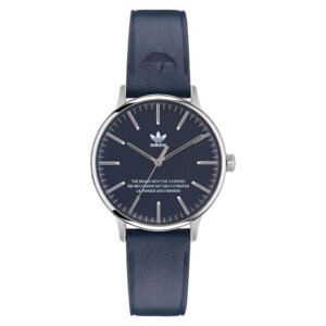 Zegarek damski Adidas model AOSY22529 charakteryzuje się wyraźnie modnym wzornictwem, który świetnie odzwierciedla zarówno wartość marki, jak i jej zaangażowanie w tworzenie stylowych, funkcjonalnych akcesoriów. Okrągła, stalowa koperta o średnicy 38 mm elegancko kontrastuje z ciemną tarczą i stylowym, skórzanym paskiem w kolorach niebieskim i srebrnym, dodając luksusowego charakteru. Mineralne szkło zapewnia wysoką odporność na zarysowania, co czyni ten zegarek wyjątkowo praktycznym, a jednocześnie atrakcyjnym dodatkiem do każdej garderoby i okazji.