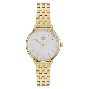 Zegarek damski Adidas model AOSY23527 to kwintesencja stylu Fashion, łącząca w sobie nowoczesność i klasykę z przymrożeniem oka. Okrągła koperta z pozłacanej stali szlachetnej w kolorze żółtego złota, o średnicy 32 mm, stanowi wyraziste tło dla jasnej tarczy, którą zdobią fluorescencyjne wskazówki i indeksy. Mineralne szkło zwiększa trwałość i czytelność, co sprawia, że jest to nie tylko akcesorium, ale również niezawodny kompan na co dzień. Zegarek ubogacony jest o elegancką bransoletę w kolorach białym i złotym oraz funkcję wodoodporności do 50 metrów, która gwarantuje odporność na codzienne wyzwania. Jako produkt marki Adidas, łączy w sobie prestiż z funkcjonalnością, idealnie oddając ducha sportowej elegancji.