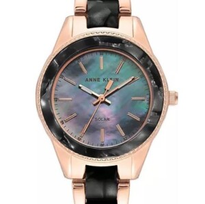 Zegarek damski Anne Klein model AK3770BKRG łączy w sobie elegancję i nowoczesną technologię, co czyni go nie tylko czasomierzem, ale również modnym dodatkiem. Opalizująca masa perłowa na tarczy, komponująca się z krystalicznymi zdobieniami, dodaje wyrafinowania, a połączenie niebieskiego i różowego złota na bransolecie z pozłacanymi elementami podkreśla odważny, ale i delikatny charakter tego akcesorium. Stal szlachetna, z której wykonano kopertę i bransoletę, gwarantuje trwałość, a mineralne szkło ochrania przed zarysowaniami, zapewniając zachowanie estetycznego wyglądu na długi czas.