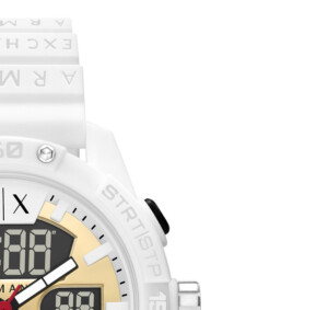 Zegarek męski Armani Exchange, model AX2961, stanowi doskonały przykład połączenia nowoczesnego designu z funkcjonalnością, charakterystycznym dla marki o rozpoznawalnym stylu fashion. Zegarek oferuje unikalną estetykę dzięki połączeniu białego koloru koperty z elementami w żółtym złocie oraz jasną tarczą, co nadaje mu wyrafinowany, ale i nowoczesny wygląd. Okrągła koperta o średnicy 46 mm zapewnia wygodne noszenie, a mineralne szkło chroni zegarek przed zarysowaniami. Dodatkowo gumowy pasek nie tylko zwiększa komfort użytkowania, ale i dodaje sportowej elegancji, co podkreśla młodzieńczy i dynamiczny charakter zegarka. Wizualne walory modelu AX2961, w połączeniu z renomą marki Armani Exchange, czynią go idealnym wyborem dla mężczyzn ceniących modę i jakość.