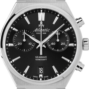 Model zegarka Atlantic 58466.41.61, jest doskonałym wyborem dla osób ceniących elegancję i subtelną klasę. Jego czarna tarcza kontrastuje z srebrno-stalową kopertą, nadając wyrafinowany, a zarazem nowoczesny wygląd. Okrągła koperta o średnicy 40 mm i grubości 9 mm jest idealnie proporcjonalna dla większości nadgarstków, co czyni ten zegarek zarówno komfortowym, jak i estetycznie przyjemnym. Srebrna stal szlachetna użyta w kopercie oraz bransolecie podkreśla trwałość i wysoką jakość wykonania, podczas gdy odporność na zarysowania szkła szafirowego gwarantuje zachowanie jego doskonałego wyglądu na długie lata. Dodatkowo, elegancję podkreślają takie funkcje jak chronograf, datownik oraz zapięcie motylkowe, które nie tylko są praktyczne, ale także zwiększają atrakcyjność zegarka.