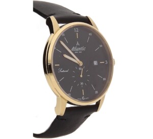 Atlantic Seatrend 65353.45.65 - zegarek męski - to zegarek stworzony dla każdego mężczyzny, który lubi nietuzinkowe oraz niezawodne dodatki. Zegarek został wykonany z miękkiej skóry, która umożliwia idealne dopasowanie do nadgarstka oraz utrzymanie koperty w stabilnej pozycji. Aby przedłużyć żywotność paska, która średnio wynosi 6-9 miesięcy można stosować specjalne kosmetyki poprawiającego jego wygląd. Atlantic Seatrend 65353.45.65 - zegarek męski to zegarek wodoodporny, który umożliwia pływanie powierzchniowe. Szafirowe szkło, z którego został wykonany charakteryzuje się wysoką odpornością na zadrapania. a wykonanie ze stali szlachetnej sprawia, że zegarek nie rdzewieje i nie zmienia koloru. Czasomierz jest wyposażony w najpopularniejszy mechanizm kwarcowy, dodatkowo posiada datownik oraz fluorescencyjne wskazówki/indeksy, które naświetlone w dzień świecą w ciemności umożliwiając tym samym odczyt godziny w warunkach ograniczonej widoczności. Czarny pasek w połączeniu ze złotymi elementami sprawia, że czasomierz na nadgarstku prezentuje się wyjątkowo.