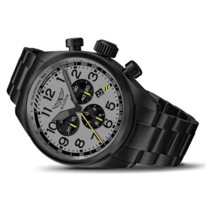 Zegarek męski Aviator model V.2.25.5.174.5 to perfekcyjne połączenie elegancji i sportowego charakteru, co sprawia, że jest idealny na każdą okazję. Jego okrągła koperta o średnicy 45mm wykonana z wytrzymałej stali szlachetnej z nanoszeniem koloru PVD/IP ma klasyczny, ale zarazem nowoczesny wygląd dzięki ciemnej tarczy i szaremu oraz czarnemu odcieniu. Szkło szafirowe, odporne na zarysowania, zapewnia trwałość i czytelność, a wodoodporność do 100m umożliwia użytkowanie nawet podczas nurkowania bez aqualungu. Sportowo-elegancki styl tego modelu Aviator podkreślają fluorescencyjne wskazówki i indeksy, które poprawiają czytelność w każdych warunkach.