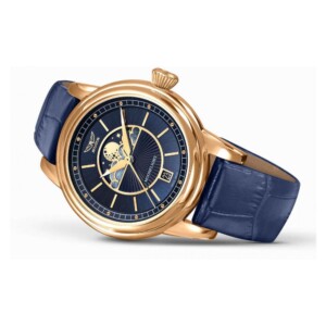 Zegarek damski Aviator model V.1.33.2.256.4 jest kwintesencją elegancji, podkreślającą prestiż marki Aviator. Kobieca koperta o średnicy 36mm wykonana ze stali szlachetnej i pokryta różowym złotem w technologii PVD/IP, doskonale harmonizuje z granatowym, skórzanym paskiem. Tarcza w ciemnych tonach, wyposażona w funkcje fazy księżyca oraz datownik, uzupełniona jest fluorescencyjnymi wskazówkami i indeksami, co zapewnia doskonałą czytelność nawet w ograniczonych warunkach świetlnych. Szkło szafirowe, odporne na zarysowania, oraz wodoodporność do 100m, czynią ten zegarek nie tylko pięknym, ale i praktycznym akcesorium na każdą okazję.