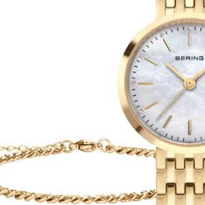 Zegarek Bering model 19126-734-GWP wyróżnia się elegancją i nowoczesnym designem, będącym kwintesencją stylu marki Bering. Z białą tarczą i żółtą kopertą ze stali szlachetnej, ten model emanuje subtelną luksusowością. Okrągły kształt koperty o średnicy 26mm i grubości zaledwie 7mm zapewnia dyskretną prezencję na nadgarstku, podkreślając minimalistyczny charakter. Bransoleta z zapięciem motylkowym jest nie tylko stylowa, ale także funkcjonalna, zapewniając użytkownikowi łatwość w zakładaniu i zdejmowaniu zegarka. Wodoodporność do 50 metrów czyni ten model odpowiednim do używania nawet podczas powierzchniowego pływania. Dzięki swojemu designowi i jakości wykonania, zegarek Bering stanowi doskonałe uzupełnienie zarówno eleganckich, jak i codziennych stylizacji.