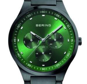 Bering Classic 11740-728 - wspaniały design tego męskiego zegarka marki Bering aż prosi się o zwrócenie na niego uwagi. Jest on niezwykle przemyślanie wykonany, jak również bardzo przemyślanie wybrano jego kolory. Połączenie zielonego oraz czarnego wygląda obłędnie, a dzięki temu, że są to standardowe kolory, urządzenie wpasuje się wspaniale w każdą Twoją stylizację.Model Bering Classic 11740-728 posiada oryginalnie wbudowaną funkcję datownika. Zadaniem tej funkcji jest ukazywanie obecnego dnia miesiąca na powierzchni tarczy produktu. Bransoletę oraz kopertę wykonano ze stali szlachetnej. Bransoletę dodatkowo wyposażono w łatwe w użyciu zapięcie motylkowe. Na zielonej, przejrzystej tarczy, która wskazuje czas analogowo, znajduje się szkło szafirowe. Precyzyjnie nałożone niezwykle dobrze zabezpiecza powierzchnię tarczy przed zarysowaniami oraz stłuczeniami. Czas w zegarku odmierza mechanizm kwarcowy. Wodoszczelność modelu ocenia się w klasie 100 m. Wybierz markę Bering, a z pewnością nie pożałujesz!