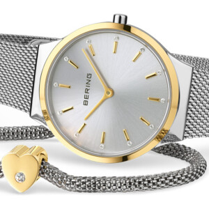Zegarek damski Bering model 12131-014-GWP to kwintesencja elegancji i subtelnej mody, skrojona na miarę współczesnej kobiety. Stanowiący połączenie srebrno-żółtych odcieni, zaowocowało niepowtarzalnym estetycznym doznaniem, które doskonale komponuje się z każdym elementem garderoby. Klasyczna, okrągła koperta o średnicy 30mm, wykonana ze stali szlachetnej z naniesieniem koloru metodą PVD/IP, nadaje zegarkowi wyjątkowy charakter. Jasna tarcza harmonijnie współgra z luksusową, odporną na zarysowania szafirową szybką, podnosząc trwałość i czytelność. Wodoodporność na poziomie 30 metrów oraz bransoleta z tej samej stali co koperta, dodatkowo podkreślają praktyczne aspekty tego modowego dodatku.