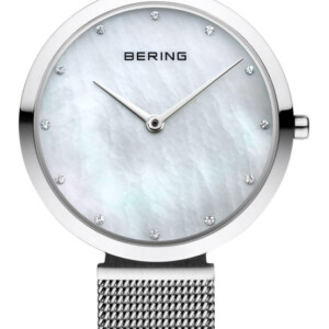 Damski zegarek Bering model 18132-004 to kwintesencja stylu Fashion, który wyróżnia się swoją elegancją i subtelnym designem. Sprawia to, że jest idealnym wyborem dla każdej kobiety ceniącej sobie zarówno piękno, jak i funkcjonalność. Charakterystyczna okrągła koperta o średnicy 32mm, wykonana ze stali szlachetnej, podkreśla nowoczesność i trwałość zegarka. Jasna tarcza zdobiona elementami z masy perłowej i cyrkoniami, oprawiona w szafirowe szkło odporne na zarysowania, zapewnia nie tylko doskonałą czytelność, ale również stanowi stylowy element dekoracyjny. Srebrna bransoleta dodaje całości szlachetności, tworząc zegarek, który jest nie tylko urządzeniem mierzącym czas, ale także wyjątkowym dodatkiem do każdego stroju.
