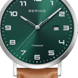 Męski zegarek Bering model 18640-568 to kwintesencja elegancji w połączeniu z najnowszymi trendami w modzie. Wyjątkowy design z zastosowaniem tytanowej koperty o średnicy 40mm i okrągłym kształcie dodaje wyrafinowania, podczas gdy brązowo-zielona tarcza i skórzany pasek wnoszą akcent luksusu. Dodatkowo, fashionowy styl tego czasomierza podkreślają eleganckie, fluorescencyjne wskazówki oraz datownik umieszczony na tarczy. Szkło szafirowe, znane ze swojej odporności na zarysowania, zapewnia długotrwałe użytkowanie i nieskazitelny wygląd. Wodoodporność do 50m pozwala na bezproblemowe pływanie powierzchniowe, co sprawia, że zegarek Bering jest idealny dla mężczyzn ceniących styl i funkcjonalność.
