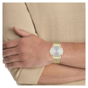 Model 25300003 z kolekcji Calvin Klein to synonim precyzji i nowoczesnego designu. Zastosowany w zegarku mechanizm kwarcowy, zasilany baterią, gwarantuje niezawodność i dokładność czasu, co jest nieocenione w szybkim tempie współczesnego życia. Szara tarcza została osadzona w żółtej kopercie wykonanej ze stali szlachetnej, co nie tylko zwiększa trwałość zegarka, ale także dodaje mu eleganckiego charakteru. Minimalistyczna grubość koperty (8mm) oraz średnica 37mm czynią ten model dyskretnym, ale zauważalnym dodatkiem. Wodoodporność do 30 metrów zapewnia ochronę przed przypadkowymi zachlapaniami, co stanowi dodatkowy argument dla aktywnych osób. Dwuletnia gwarancja oferowana przez autoryzowanego sprzedawcę stanowi dodatkowe zabezpieczenie i pokazuje zaufanie marki Calvin Klein do jakości swoich produktów. To idealne połączenie technologii i stylu, które spełni oczekiwania nawet najbardziej wymagających użytkowników.