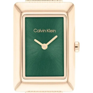 Zegarek damski Calvin Klein o numerze modelu 25200395 to kwintesencja elegancji i nowoczesności, która charakteryzuje styl Fashion tej renomowanej marki. Pozłacane różowym złotem elementy, takie jak bransoleta oraz prostokątna koperta, pięknie komponują się z ciemnozieloną tarczą, tworząc unikalny i wyrafinowany design. Wykonany ze stali szlachetnej zegarek ten gwarantuje długotrwałość i wytrzymałość, a dodatkowa powłoka PVD/IP zwiększa jego odporność na zarysowania. Ten model idealnie podkreśla kobiecą elegancję i jest wyraźnym symbolem prestiżówki Calvin Klein, która od lat cieszy się zaufaniem dzięki swojej jakości i zmysłowi estetycznemu.