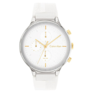 Zegarek damski Calvin Klein o numerze modelu 25200244 to kwintesencja stylu Fashion, który harmonijnie łączy elegancję z nowoczesnością. Jego okrągła koperta wykonana z wysokiej jakości stali szlachetnej w kolorach białym i srebrnym, wraz z jasną tarczą sprawiają, że jest to akcesorium pasujące do każdego stroju – od casualowego po elegancki. Gumowy pasek zapewnia wygodę noszenia, a minimalistyczny design podkreśla prestiż marki Calvin Klein. Dodatkowym atutem jest szkło mineralne, które zapewnia doskonałą czytelność oraz odporność na zarysowania, a wodoodporność na poziomie do 30m gwarantuje ochronę przed niespodziewanymi zachlapaniami.