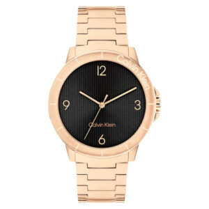 Zegarek damski Calvin Klein, model 25100024, to kwintesencja elegancji i współczesnego designu, które perfekcyjnie odzwierciedlają prestiż marki. Okrągła koperta o średnicy 36mm, wykonana ze stali szlachetnej w kolorze czarnym i różowego złota, nadaje zegarkowi luksusowy wygląd. Ciemna tarcza harmonijnie komponuje się z minimalistycznym stylem Fashion, który jest znakiem rozpoznawczym Calvin Klein. Solidna bransoleta i mineralne szkło odpowiadają za trwałość oraz wytrzymałość, podczas gdy wodoodporność do 30m gwarantuje ochronę przed przypadkowymi zachlapaniami. Ten zegarek to nie tylko czasomierz, ale również wyjątkowy dodatek, który podkreśli każdą stylizację.