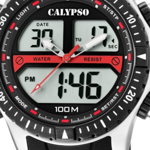 Zegarek męski Calypso model K5773/4 to kwintesencja stylu Fashion, łącząca nowoczesną technologię z dynamicznym wyglądem. Jego okrągła, 48mm koperta wykonana z wytrzymałego tworzywa sztucznego, podkreślona jest przez elegancką, jasną tarczę oraz wygodny, gumowy pasek, co dodaje zegarkowi sportowego charakteru. Szkło hesalitowe zapewnia dobra odporność na zarysowania, a wodoodporność na poziomie 100m czyni go idealnym towarzyszem nie tylko na co dzień, ale i podczas aktywności wodnych. Wskazówki i indeksy fluorescencyjne, podświetlana tarcza, datownik oraz chronograf to funkcjonalności, które podnoszą wartość użytkową zegarka. Zegarek Calypso to doskonały wybór dla mężczyzn ceniących sobie połączenie funkcjonalności z modnym designem.