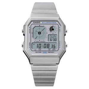 Zegarek Casio model A130WE-7A to uosobienie klasycznego stylu Retro, który przyciąga uwagę swoją subtelną, szarą tarczą i elegancką, stalową bransoletą. Smukła koperta o średnicy 34mm i grubości zaledwie 9mm nadaje zegarkowi wyrafinowany charakter, idealnie komponując się z każdym strojem. Srebrny kolor koperty i bransolety podkreśla wysokiej jakości stal szlachetną, używaną do produkcji, co gwarantuje trwałość i odporność na codzienne użytkowanie. Szkło hesalitowe, choć delikatne, doskonale eksponuje każdy szczegół tarczy, a klasyczna estetyka tego modelu z serii Casio odbija długą tradycję marki w tworzeniu niezawodnych i stylowych czasomierzy.
