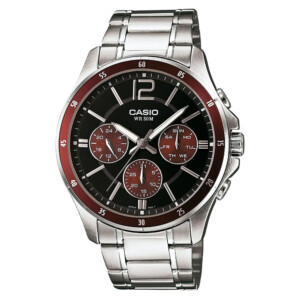 Zegarek męski model MTP-1374PD-5A to kwintesencja elegancji połączona z nowoczesnym designem. Stal szlachetna, z której wykonane są koperta i bransoleta, w połączeniu z ciemnym kolorem tarczy i srebrnymi wykończeniami, zapewniają mu ponadczasowy wygląd, który idealnie komponuje się z męskim stylem "Fashion". Mineralne szkło chroniące tarczę zapewnia trwałość i odporność na zarysowania, co czyni ten model szczególnie praktycznym wyborem. Wodoodporność na poziomie 50 metrów oraz funkcje takie jak datownik, fluorescencyjne wskazówki i indeksy oraz zakręcany dekiel oferują nie tylko komfort użytkowania, ale także niezawodność w codziennym życiu i podczas aktywności związanych z wodą. Z tym zegarkiem każdy mężczyzna może poczuć się stylowo i pewnie w każdej sytuacji.