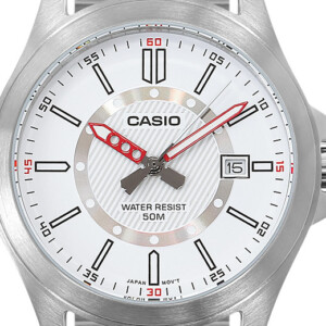 Zegarek męski Casio model MTP-E700D-7E to kwintesencja stylu Fashion, łącząca nowoczesność z elegancją. Jego okrągła stalowa koperta o średnicy 40mm i biała, jasna tarcza, osadzona pod trwałym szkłem mineralnym, prezentują się wyjątkowo stylowo na każdym nadgarstku. Bransoleta z wysokiej jakości stali szlachetnej, zdobiona w kolorze srebrnym, potęguje wrażenie luksusu. Dodatkowo, funkcje takie jak datownik i fluorescencyjne wskazówki pomagają w codziennym użytkowaniu. Jest to idealny wybór dla mężczyzn, którzy cenią sobie zarówno funkcjonalność, jak i modny design.