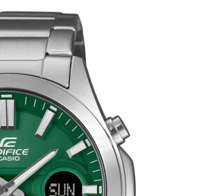 Casio EFV-C120D-3A to kwintesencja stylu Fashion dla mężczyzn ceniących ponadczasową elegancję. Okrągła, solidna koperta o średnicy 46mm wykonana ze stali szlachetnej gwarantuje trwałość i nowoczesny design. Ciemny odcień tarczy ze zgodnością do srebrno-zielonego koloru bransolety wyraźnie podkreśla męski charakter zegarka, dodatkowo uzupełnionego fluorescencyjnymi wskazówkami i indeksami. Mineralne szkło zabezpieczające tarczę oraz wodoodporność do 100m pozwala na aktywność bez ograniczeń. Casio, jako marka znana z innowacyjności oraz niezawodności, potwierdza wartość swoich produktów, oferując aż 6 lat gwarancji. Ten zegarek to więcej niż czasomierz; to akcesorium, które podkreśla styl i osobowość.