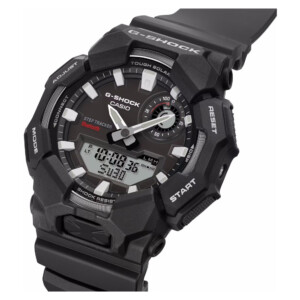 Model G-shock GA-B010-1A cieszy się uznaniem dzięki swojemu wyraźnie sportowemu stylowi w połączeniu z klasyczną elegancją. Solidna, czarna koperta o średnicy 49 mm i grubości 15 mm nadaje zegarkowi męski, zdecydowany charakter, podkreślony przez minimalistyczną, czarną tarczę. Szkło mineralne gwarantuje wysoką odporność na zarysowania, co w połączeniu z wodoodpornością do 200 metrów sprawia, że jest to idealny wybór dla aktywnych i ceniących przygody na świeżym powietrzu. Lekkość konstrukcji zaskakująca przy wadze jedynie 60g oraz funkcjonalność, z solarnym mechanizmem ładowania i eleganckim skórzanym paskiem, podkreślają uniwersalny, sportowy styl tego modelu.