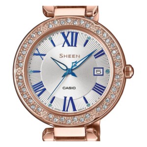 Na wygląd zegarka Casio Sheen SHE-4057PG-7A - zegarek damski składają się:- Kształt koperty Okrągła - Najbardziej popularny kształt koperty występujący w przypadku naręcznych czasomierzy.