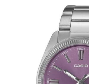 Męski zegarek Casio MTP-1302PD-6A doskonale łączy w sobie styl fashion z wyrafinowaną elegancją, podkreśloną przez ciemną tarczę i efektowną kombinację kolorystyczną fioletu i srebra. Okrągła koperta o średnicy 38 mm wykonana z mosiądzu przydaje zegarkowi solidności, zaś mineralne szkło zwiększa jego odporność na zarysowania. Klasyczny design uzupełniony jest przez nowoczesne funkcje jak datownik oraz fluorescencyjne wskazówki i indeksy, co sprawia, że zegarek ten jest nie tylko piękny, ale również funkcjonalny. Casio, jako renomowana marka, zapewnia trwałość i niezawodność, potwierdzone trzyletnią gwarancją plus dodatkowymi trzema latami, co jest świadectwem zaufania do jakości swoich produktów.
