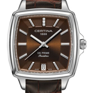 Model C028.310.16.296.00 marki Certina to kwintesencja elegancji, która przyciąga uwagę swoją wyrafinowaną estetyką. Brązowa tarcza harmonijnie komponuje się z brązowym paskiem, tworząc klasyczny, ale zarazem nowoczesny wygląd. Prostokątna, stalowa koperta z srebrnym wykończeniem nadaje zegarkowi wyrazisty charakter, a szafirowe szkło, odporne na zarysowania, zapewnia trwałość i czytelność w każdych warunkach. W szczególności, model ten wyróżnia wodoodporność na poziomie 100 metrów, co jest doskonałe dla osób aktywnych, ceniących sobie zarówno funkcjonalność, jak i styl. Elegancki design uzupełniają funkcje jak datownik, co czyni go idealnym wyborem dla nowoczesnego mężczyzny poszukującego elegancji w połączeniu z praktycznością.