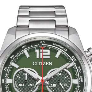 Zegarek męski Citizen CA4640-50X łączy w sobie elegancję i funkcjonalność sportową, prezentując przy tym typową dla marki Citizen jakość i trwałość. Wykonany ze stali szlachetnej, z okrągłą, srebrzystą kopertą o średnicy 41 mm i dopasowaną bransoletą, model ten przyciąga wzrok zieloną tarczą z liniowymi indeksami. Całość jest przyjemna dla oka i solidna w użytkowaniu. Zaawansowany mechanizm solarny, wodoodporność do 100 metrów oraz funkcje takie jak chronograf, tachymetr oraz Luminova na wskazówkach czynią go zarówno praktycznym narzędziem dla sportowców, jak i eleganckim dodatkiem do codziennego ubioru.