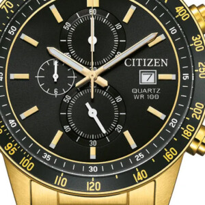 Zegarek Citizen model AN3682-54E to kwintesencja elegancji połączonej z nowoczesną technologią. Czarna tarcza wyraźnie kontrastuje z żółtą kopertą i bransoletą, które są wykonane ze stali szlachetnej, dodając urządzeniu wyjątkowego charakteru. Okrągła forma i średnica koperty wynosząca 44mm nadają zegarkowi męski, wyrazisty look, natomiast 10mm grubość koperty zapewnia mu subtelną klasę bez nadmiernej masywności. Mineralne szkło ochraniające tarczę oraz 100-metrowa wodoodporność sprawiają, że jest to idealny wybór dla aktywnych i ceniących styl. Mechanizm kwarcowy zasilany baterią gwarantuje niezawodność i precyzję. Citizen, jako marka, podkreśla swoją wartość przez połączenie wysokiej jakości materiałów z ponadczasowym designem.