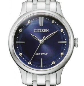 Citizen Lady EM0890-85L - przepiękny i elegancki zegarek damski marki Citizen. Jego zdobiona brylantami tarcza dodaje całości niezwykłego uroku, a także prestiżu. Srebrna koperta i niebieska tarcza wspaniale ze sobą współgrają i tak samo idealnie współgrać będą również z każdą Twoją stylizacją!