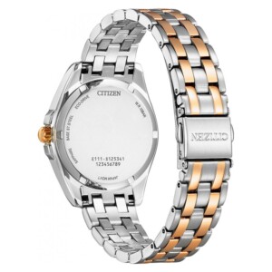 Citizen Elegance EO1213-85E - zegarek damski to ponadczasowa elegancka propozycja, nadaje się na każdą okazję. Czasomierz oblany został z wysokiej jakości stali szlachetnej, bezpieczny dla osób ze skłonnością do alergii. Tarcza analogowa z indeksami i wskazówkami flurosencyjnymi, jest bardzo praktyczna. Wyświetlacz ochroniony przed uszkodzeniem przez szkło szafirowe. W środku zegarka zamontowany został klasyczny i dokładny mechanizm kwarcowy.Citizen Elegance EO1213-85E - zegarek damski posiada szykowną stalową bransoletę, które świetnie dopasowuje się do nadgarstka, jest bardzo komfortowa. Bransoleta z zapięciem motylkowym zapewnia stabilnie otrzymanie na ręce. W polu tarczy umieszczony został dodatkowo datownik. Czasomierz wyposażony został z panel słoneczny, który pobiera promienie słoneczne do zasilania urządzenia. Jest to energooszczędne i przyjazne dla środowiska urządzenie. Gwarancja producenta na okres 2 lat.
