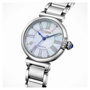 Zegarek Citizen model EM1060-87N to kwintesencja elegancji połączona z nowoczesną technologią, co odzwierciedla renomę marki Citizen na światowym rynku. Urokliwa niebieska tarcza zegarka idealnie komponuje się z srebrnym, stalowym kolorem koperty i bransolety, tworząc nie tylko stylowy, ale i uniwersalny dodatek do każdego stroju. Okrągły kształt koperty o średnicy 30mm oraz jej grubość wynosząca zaledwie 8mm podkreślają subtelność i elegancję tego modelu. Dodatkowo, wodoodporność do 50 metrów oraz szkło szafirowe, odporne na zarysowania, czynią go idealnym kompanem zarówno na co dzień, jak i podczas aktywności wodnych o niskiej intensywności. Model ten doskonale odzwierciedla filozofię marki Citizen, która stawia na jakość, trwałość i przemyślany design.