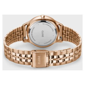 Zegarek marki Cluse, model CW10702, to kwintesencja elegancji i subtelności, idealna dla osób ceniących sobie klasyczną estetykę z nutką nowoczesności. Jego okrągła koperta o średnicy 34mm, wykonana z wysokiej jakości różowej stali szlachetnej, doskonale komponuje się z białą tarczą, co sprawia, że zegarek jest wyrafinowany, ale zarazem delikatny. Cienka, zaledwie 7mm grubość koperty dodaje lekkości i komfortu, podkreślając minimalistyczny design. Bransoleta tego zegarka, również wykonana ze stali szlachetnej, elegancko oplata nadgarstek, tworząc spójny i stylowy wygląd. Logo marki Cluse, symbolizujące ponadczasową elegancję i dbałość o detale, jest dyskretnie umieszczone, dodając luksusowego charakteru.