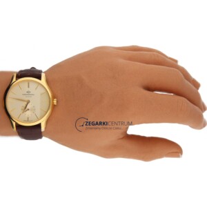 Zegarek męski Continental, model 12205-GT256230, to kwintesencja elegancji i luksusu, idealny dla każdego nowoczesnego dżentelmena. Jest to wyrafinowana kombinacja klasy i stylu dzięki błyszczącej, jasnej tarczy oraz okrągłej kopercie pokrytej metodą PVD/IP, co gwarantuje głęboki, trwały kolor złota. Pozłacane komponenty w żółtym złocie doskonale harmonizują z jasnym paskiem skórzanym, podkreślając wyjątkowość i prestiż marki Continental. Szkło szafirowe, odporne na zarysowania, gwarantuje trwałość i bezpieczeństwo na co dzień, a estetyka i funkcjonalność tego modelu sprawiają, że jest on nie tylko dodatkiem do garderoby, ale również odzwierciedleniem wyrafinowanego gustu właściciela.