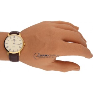 Zegarek męski Continental model 41050-GT256210 wyraźnie wyróżnia się w segmencie modowych akcesoriów dzięki swoim wykwintnym walorom estetycznym. Elegancka, okrągła koperta pozłacana na żółty kolor złota w technologii PVD/IP i średnicą 36mm, doskonale komponuje się z szampańskim kolorem tarczy, co nadaje zegarkowi luksusowy i wyrafinowany wygląd. Wzmocniona szafirowym szkłem, odporne na zarysowania, oraz klasyczny, skórzany pasek dodają klasy, podkreślając prestiż marki Continental. Ten stylowo zaprojektowany zegarek bez wątpienia sprosta oczekiwaniom miłośników mody, którzy cenią sobie zarówno wygląd jak i trwałość.