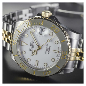 Zegarek damski Davosa o numerze modelu 166.197.02 jest kwintesencją luksusu połączonego z funkcjonalnością przeznaczoną specjalnie dla miłośniczek nurkowania. Wykonana z wytrzymałej stali szlachetnej i ceramiki, okrągła koperta o średnicy 36mm wzbogacona jest bikolorowym wykończeniem metodą PVD/IP, co dodaje zegarkowi nie tylko wytrzymałości, ale i eleganckiego, nowoczesnego wyglądu. Biała tarcza z punktowymi indeksami, wyposażona w funkcje datownika, zakręcanej koronki i dekla, jest czytelna i praktyczna. Dużym atutem jest wodoodporność do 200 metrów, co umożliwia użytkowanie zegarka podczas nurkowania z aqualungiem. Wykończenie szafirowym szkłem zapewnia ochronę przed zarysowaniami, a dwutonowa bransoleta z dodatkiem ceramiki podkreśla klasę i styl nowoczesnej, aktywnej kobiety. Kompozycja funkcji oraz wizualnej elegancji sprawia, że zegarek ten jest doskonałym wyborem dla każdej entuzjastki sportów wodnych.